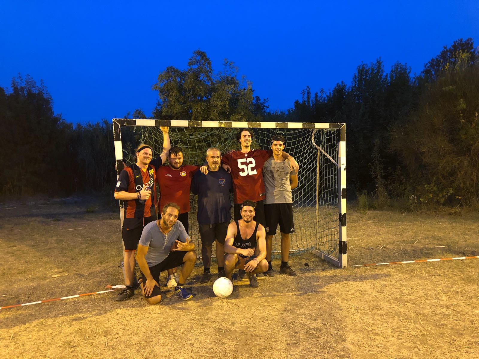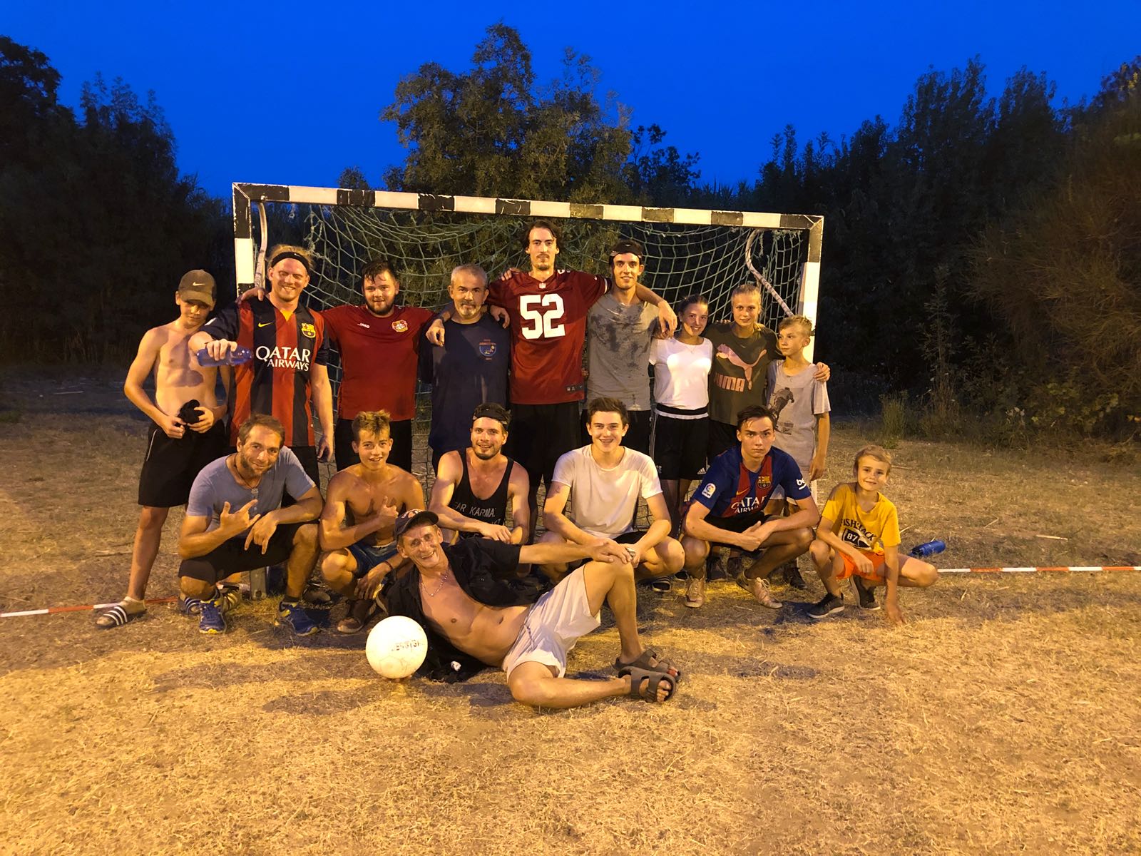 Kinder haben dafür auf ihren Leiter gesetzt. So hatten wir z.B. die Aufgabe, wie lange kann dein Leiter einen Ball hochhalten. Sinas Gruppenkind verschätze sich, Sina schaffte die vorhergesagte Anzahl nicht und wurde bestraft. Sie bekam Wasser über den Kopf gekippt. Das war bei den Temperaturen allerdings fast Belohnung als Strafe. So ging der Abend dann weiter… zwischendrin gab es verschiedene Show Acts. So sangen die vier besten Gruppen ihr Lagerlied. Einige Kinder hatten auch noch Programmpunkte vorbereitet. Es gab Tanzeinlagen von zwei Gruppen. Zwei Mädchen trauten sich sogar, etwas vorzusingen. Das war sehr schön. Ein weiteres Highlight waren kurze Lager-Werbefilme, die vorher mit den Teamern gedreht wurden. So strahlten uns z.B. Ilona aus dem Kiosk, Maria aus der Bank oder Hausmeister Mäthes bei der Arbeit an. Unsere Turniersieger wurden ebenfalls prämiert. Lagerleiter Jörg sahnte dabei ab, er gewann das Vier-Gewinnt Turnier und außerdem die Kicker Turniere bei den Kindern und den Teamern. Hier möchte ich meinen persönlichen Glückwunsch aussprechen. Fred und Jörg besiegten Ilona und mich im Finale. Es ist mir ein Rätsel, wie das passieren konnte. Der Stachel sitzt tief und wir wollen dafür unbedingt hochoffiziell eine Revanche einfordern! Der Dienstag wurde nun zum Aufräumen genutzt. Da es in der 2. Hälfte weniger Teamer und Kinder gibt, wurden bereits einige Zelte abgebaut. Müllberge wurden beseitigt, damit die 2. Hälfte es genauso sauber vorfindet, wie die 1.Hälfte. Gruppe Tobi hatte Küchendienst. Es gab Bratwurst mit Currysoße und Kartoffelecken. Die Gruppen Vanessa und Markus durften am Vormittag noch in den Kletterpark und danach halfen sie dann natürlich auch beim Aufräumen. Alle arbeiteten Hand in Hand - viele Hände, schnelles Ende! Am Abend spielten die Sieger des Fußballturniers noch gegen ein Team der Leiter. Was soll ich sagen, so sehen Sieger aus! Die Kinder räumten heute bereits die Zelte und es gab eine große Filmnacht. Alle schliefen draußen. Bei diesen Temperaturen ist es das Beste was man machen kann.
