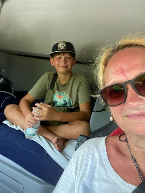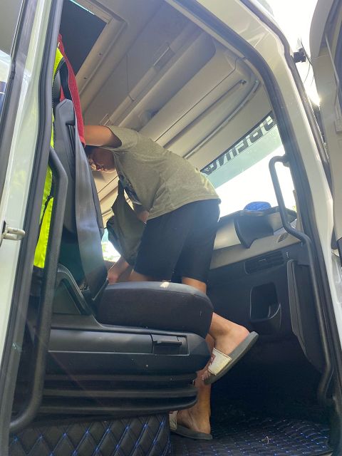 Als dann am Ende doch alles fertig war, wurden die Kinder nochmal zu dem großen Discounter mit dem L und dem idl hintendran, gefahren. Ein Teilnehmer, der Christian, hat die Fahrt verschwitzt und sie waren ohne ihn gefahren. Trucker Ralf hatte ein Herz für Kinder (und Vivi) und fuhr Christian und Vivi mit dem großen LKW zum Lidl.