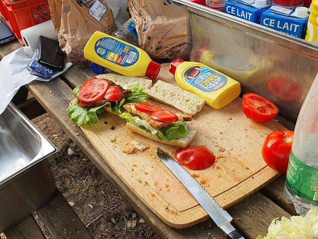 Das Abendessen war improvisiert, aber dennoch richtig lecker. Es gab Schnitzelbaguettes mit Salat und Tomaten. Wer wollte, konnte auch bei Ravioli zugreifen.