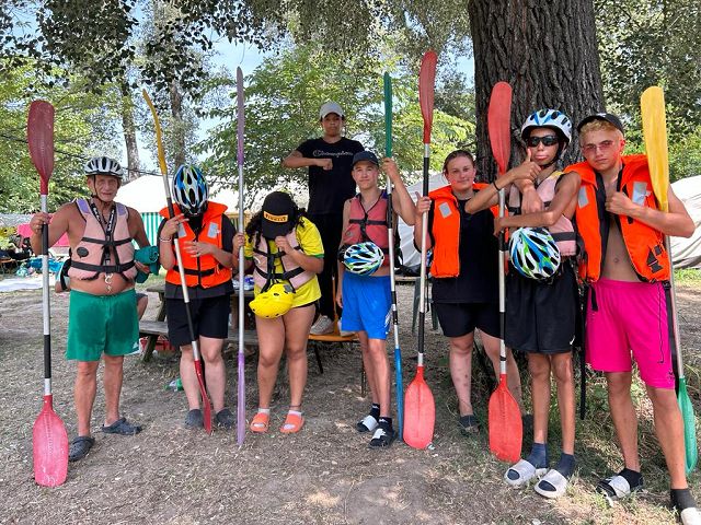 Ein paar Kinder waren nicht klein zu kriegen und machten mit Fred die kleine Kanutour von St. Martin d'Ardèche nach St. Just d'Ardèche. Das sind ca. 6 oder 7 km zu paddeln, es gibt ein paar kleinere Stromschnellen. Diese Tour gilt als Testtour für die große Kanutour, bei der weit mehr als 30 km zu paddeln sind. Das dürfen nur einige ausgewählte Paddler mitmachen.