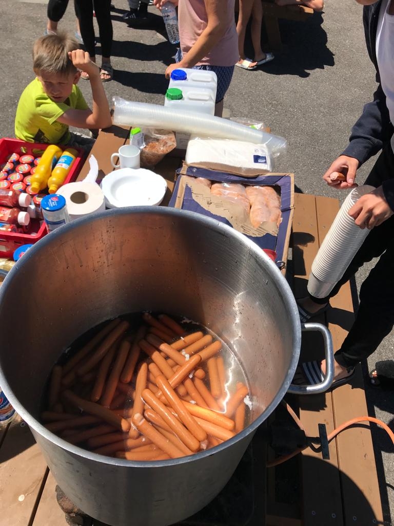 Die Gruppe hatte eine gute Rückfahrt und ist um 19:20 Uhr unter der Stelze vorgefahren. Unbedingt erwähnen und zeigen möchte ich euch die Mittagspause. Es wurde ein großer Topf ausgepackt, Würstchen rein und kurz drauf waren die Hotdogs fertig. Lecker!